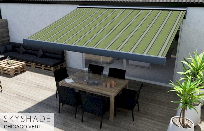 Every Skyshade awning features premium Dickson Solar fabrics. These have outstanding durability and maintain vibrant colour, block UV rays (UPF 50+), resist water and stains, and perform reliably for years.